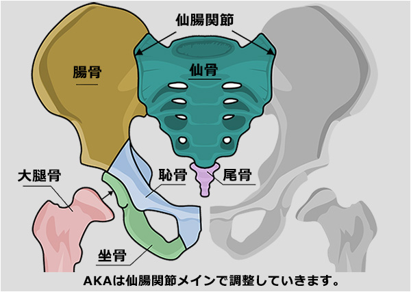 AKA施術は動きが悪いために痛みが発症している関節(※腰痛の場合は仙腸関節、肋椎関節)に手技で刺激を与え、関節本来の正しい機能を引き出す技術です。関節機能が改善することで、痛みやしびれが消えていきます。